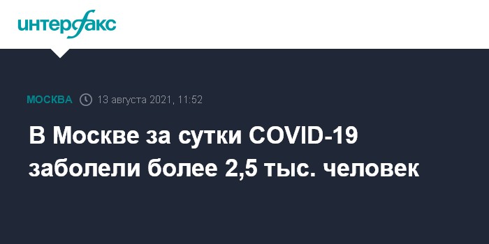 Москва. 13 августа. INTERFAX.RU - Еще 2529 случаев заболевания коронавирусом зафиксировали в Москве за сутки, следует из данных оперативного штаба по контролю ситуации с COVID-19.