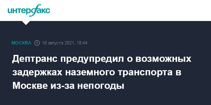 Москва. 18 августа. INTERFAX.RU - Сложные погодные условия могут повлиять на работу наземного пассажирского транспорта в Москве, сообщается в телеграм-канале столичного департамента транспорта.
