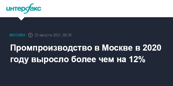 Промпроизводство в Москве в 2020 году выросло более чем на 12%