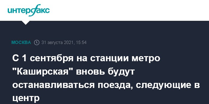 С 1 сентября на станции метро "Каширская" вновь будут останавливаться поезда, следующие в центр