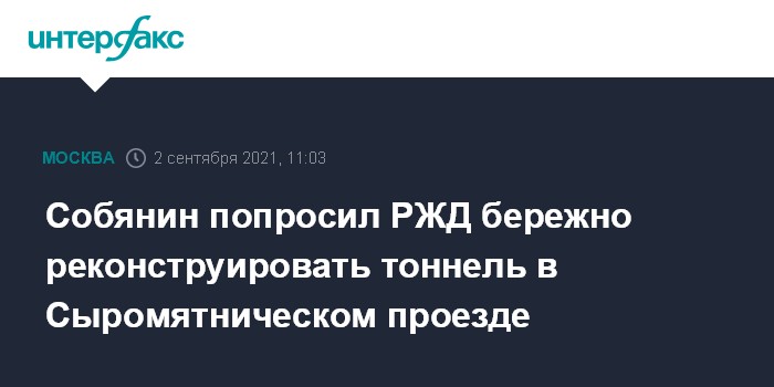 Собянин попросил РЖД бережно реконструировать тоннель в Сыромятническом проезде