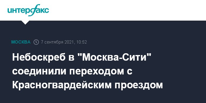 Небоскреб в "Москва-Сити" соединили переходом с Красногвардейским проездом