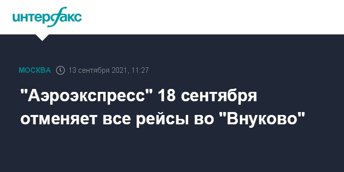 "Аэроэкспресс" 18 сентября отменяет все рейсы во "Внуково"