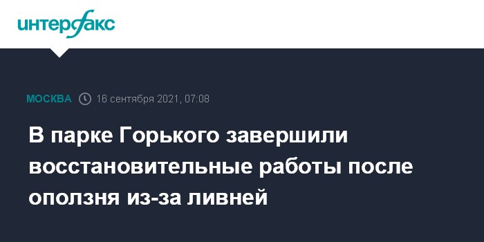 Москва. 16 сентября. INTERFAX.RU - Противооползневые работы закончились в парке имени Горького, сползание грунта произошло летом 2020 года из-за сильных дождей, сообщил заместитель мэра Москвы Петр Бирюков в четверг.