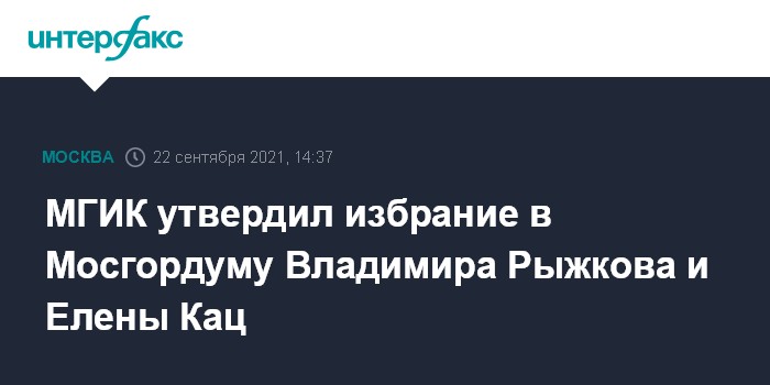 МГИК утвердил избрание в Мосгордуму Владимира Рыжкова и Елены Кац