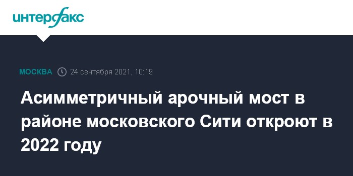 Асимметричный арочный мост в районе московского Сити откроют в 2022 году