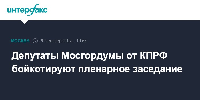 Москва. 29 сентября. INTERFAX.RU - Московское отделение КПРФ решило пропустить пленарное заседание столичного парламента 29 сентября в связи с несогласием с результатами дистанционного электронного голосования (ДЭГ) на прошедших выборах, передает корреспондент "Интерфакса".