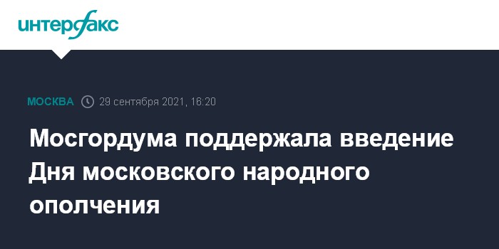 Москва. 29 сентября. INTERFAX.RU - Депутаты Мосгордумы в первом чтении поддержали законопроект о введении 11 октября памятной даты Дня московского народного ополчения, сообщил "Интерфаксу" спикер Мосгордумы Алексей Шапошников и назвал принятие этого закона частью патриотической программы.
