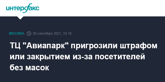 Москва. 30 сентября. INTERFAX.RU - Штраф и временное закрытие грозят московскому торговому центру (ТЦ) "Авиапарк" на севере Москвы за нарушения мер профилактики COVID-19, сообщил главный инспектор столичного объединения административно-технических инспекций (ОАТИ) Антон Романов.