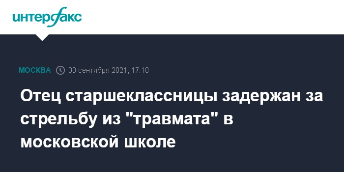 Москва. 30 сентября. INTERFAX.RU - Московские полицейские задержали отца школьницы, который стрелял из травматического оружия на территории школы на северо-востоке Москвы, сообщили в пресс-службе столичного управления МВД.