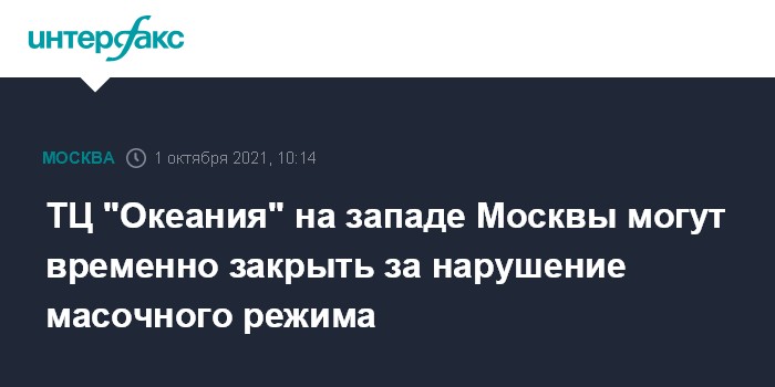 ТЦ "Океания" на западе Москвы могут временно закрыть за нарушение масочного режима