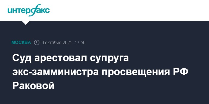 Суд арестовал супруга экс-замминистра просвещения РФ Раковой