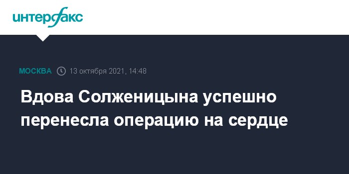 Москва. 13 октября. INTERFAX.RU - Восьмидесятидвухлетняя вдова писателя Александра Солженицына Наталия перенесла операцию на сердце, все прошло успешно, сообщил "Интерфаксу" ее сын Степан Солженицын.