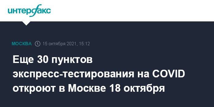 Москва. 15 октября. INTERFAX.RU - Еще 30 пунктов экспресс-тестирования на коронавирус откроют в Москве с понедельника, сообщил журналистам мэр Москвы Сергей Собянин.