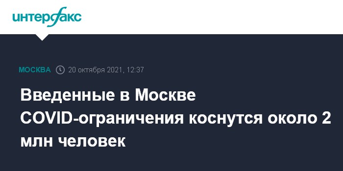 Введенные в Москве COVID-ограничения коснутся около 2 млн человек
