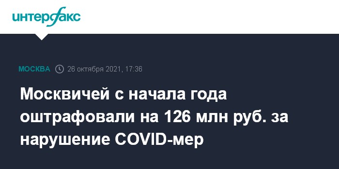 Москвичей с начала года оштрафовали на 126 млн руб. за нарушение COVID-мер