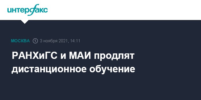В Российской академии народного хозяйства и госслужбы (РАНХиГС) сообщили "Интерфаксу", что "в связи со сложной эпидемиологической ситуацией в столице и в соответствии с рекомендациями региональных властей "руководство академии решило продлить удаленку для студентов "до дальнейшего распоряжения".