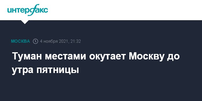 Москва. 4 ноября. INTERFAX.RU - В Москве местами ожидается туман, он сохранится до утра пятницы, сообщается в телеграм-канале комплекса городского хозяйства в четверг.