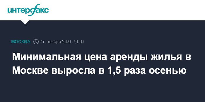 Москва. 15 ноября. INTERFAX.RU - Минимальная цена на аренду жилья в Москве осенью выросла на 50%, сообщили в компании "Инком-Недвижимость".