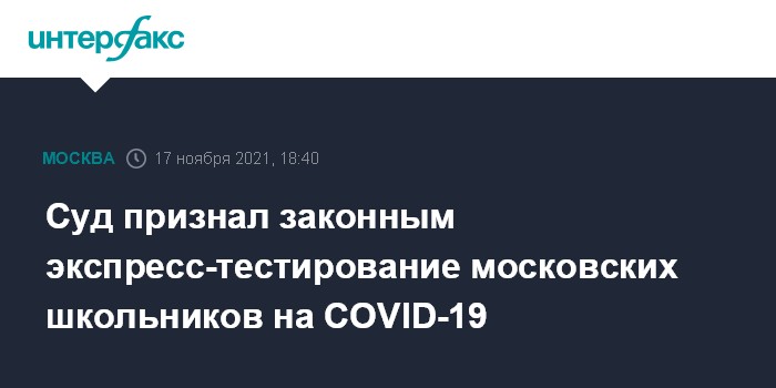 Москва. 17 ноября. INTERFAX.RU - Мосгорсуд отклонил иск отца столичной школьницы, который просил признать незаконным приказ департамента здравоохранения и департамента образования и науки столицы об экспресс-тестировании учеников на коронавирус, сообщили "Интерфаксу" в пресс-службе суда.