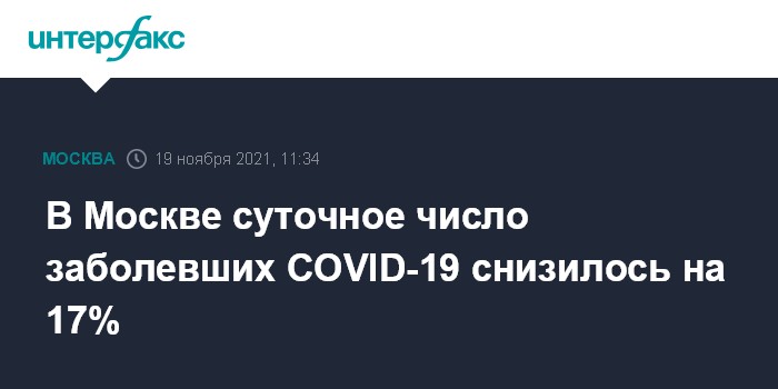 15 ноября мэр ссообщил, что число заболевших COVID-19 в Москве за последнюю неделю снизилось на 23%, госпитализированных - на 19%.