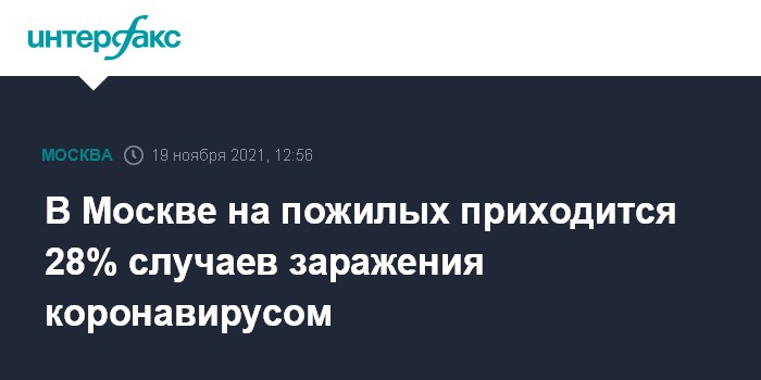 Москва. 19 ноября. INTERFAX.RU - Среди новых случаев заражения коронавирусом в Москве 28% приходится на пожилых людей, на них также приходится 85% смертей от COVID-19, сообщила телеканалу "Россия 24" заммэра столицы Анастасия Ракова.