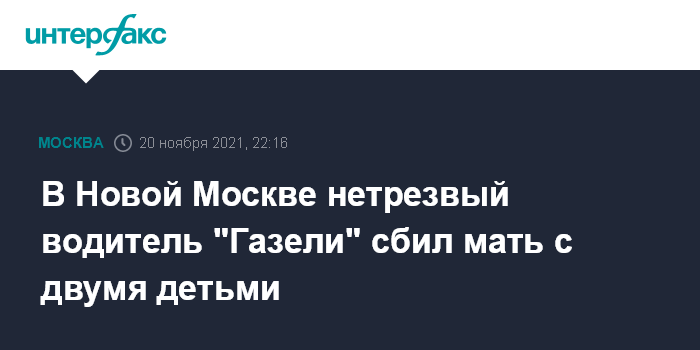 Со своей стороны представитель прокуратуры Москвы сообщила, что водитель "Газели" был нетрезв. На территории деревни Николо-Хованской поселения Сосенское водитель автомобиля "Газель" совершил наезд на мать и двух детей - мальчика 2 лет и 9-месячного мальчика, который находился в коляске. Младенец скончался на месте происшествия.