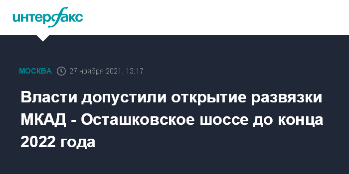Власти допустили открытие развязки МКАД - Осташковское шоссе до конца 2022 года
