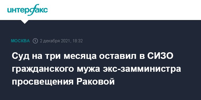 Суд на три месяца оставил в СИЗО гражданского мужа экс-замминистра просвещения Раковой