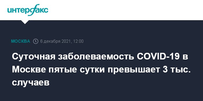 Суточная заболеваемость COVID-19 в Москве пятые сутки превышает 3 тыс. случаев