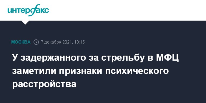 Москва. 7 декабря. INTERFAX.RU - Москвич, устроивший стрельбу в столичном отделении МФЦ, имеет признаки психического расстройства, сообщил "Интерфаксу" информированный источник.