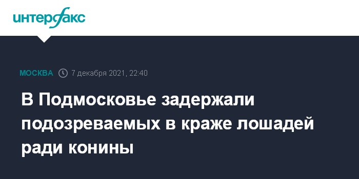 Москва. 7 декабря. INTERFAX.RU - В Подмосковье полицейские задержали двух подозреваемых в кражах породистых лошадей из конноспортивных клубов, сообщили в региональном управлении МВД. По версии следствия, животных они забивали на мясо и продавали.