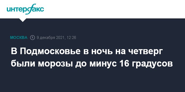 Москва. 9 декабря. INTERFAX.RU - В ночь на четверг 9 декабря в столичном регионе, как и обещали синоптики, ударили морозы до минус 16 градусов, прошел небольшой снег. Минтранс Подмосковья предупредил автомобилистов, что это может осложнить ситуацию на дорогах.