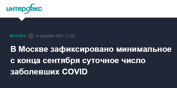 Москва. 14 декабря. INTERFAX.RU - Более 1,9 тыс. случаев заболевания коронавирусом зафиксировали в Москве за сутки, это минимальный со второй декады сентября показатель, следует из обнародованных во вторник данных оперативного штаба по контролю ситуации с COVID-19.