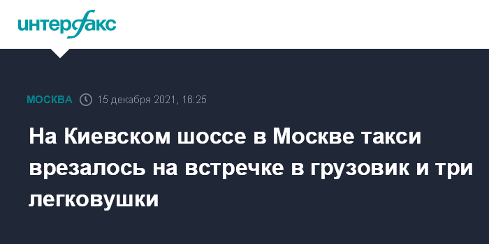 На Киевском шоссе в Москве такси врезалось на встречке в грузовик и три легковушки