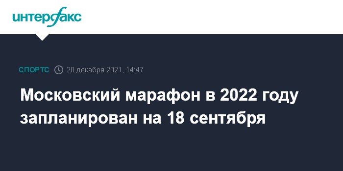 Москва. 20 декабря. INTERFAX.RU - Крупнейшие забеги в российской столице, Московский полумарафон и Московский марафон, в 2022 году пройдут 15 мая и 18 сентября соответственно, сообщили "Интерфаксу" в "Беговом сообществе".