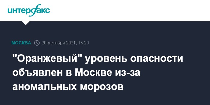 "Оранжевый" уровень опасности объявлен в Москве из-за аномальных морозов