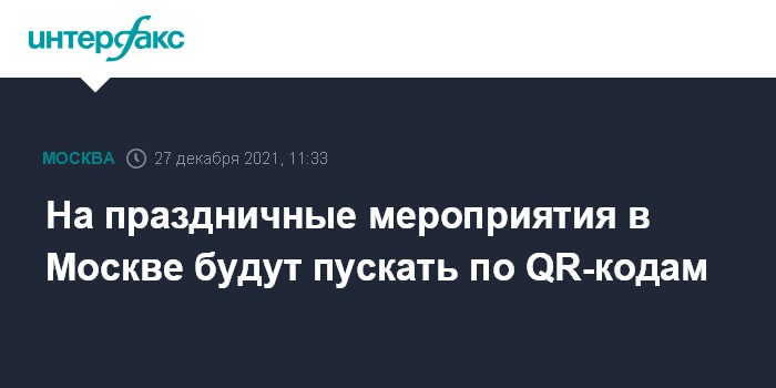 Москва. 27 декабря. INTERFAX.RU - В Москве на новогодние праздники пускать на территорию городских культмассовых и детских мероприятий будут по QR-кодам, сообщила пресс-служба городского Департамента региональной безопасности и противодействия коррупции.