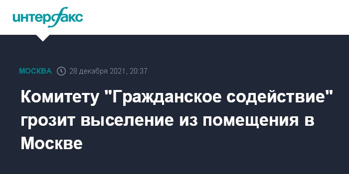 Москва. 28 декабря. INTERFAX.RU - Председатель правозащитного комитета "Гражданское содействие" (признан в РФ НКО-иноагентом) Светлана Ганнушкина сообщила, что департамент городского имущества Москвы обратился к организации с просьбой освободить помещение на Олимпийском проспекте и уведомил о решении расторгнуть с комитетом договор безвозмездного пользования.