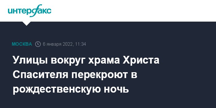 Москва. 6 января. INTERFAX.RU - Вечером в четверг и рождественской ночью в Москве перекроют улицы вокруг храма Христа Спасителя, сообщили на портале мэра и правительства столицы.