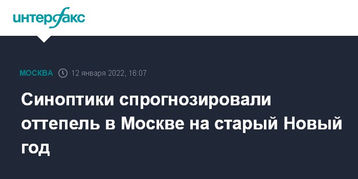"В ночь в пятницу (14 января), это новогодняя ночь по старому стилю, повышение сначала до - 6, а к утру температура будет стремиться к нулевой отметке, а днем она уже будет оттепельная, до + 2 градусов", - сказал Вильфанд в среду "Интерфаксу".
