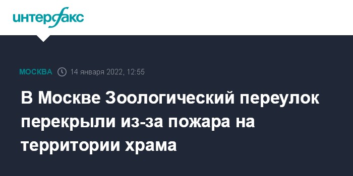 В Москве Зоологический переулок перекрыли из-за пожара на территории храма