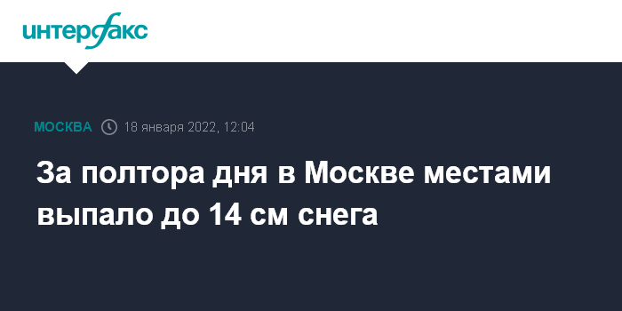 За полтора дня в Москве местами выпало до 14 см снега