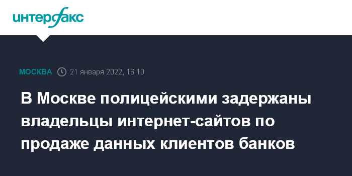 "Задержаны создатели интернет-сайтов, на которых продаются данные учетных записей банк-клиент и банковских карт", - сказал собеседник агентства.