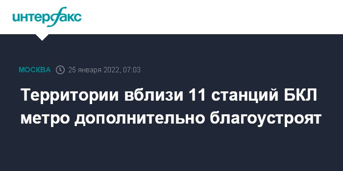 Москва. 25 января. INTERFAX.RU - Второй этап благоустройства территорий, прилегающих к 11 станциям Большой кольцевой линии (БКЛ) метро, предполагается завершить в 2022 году, сообщил заместитель мэра Петр Бирюков журналистам во вторник.