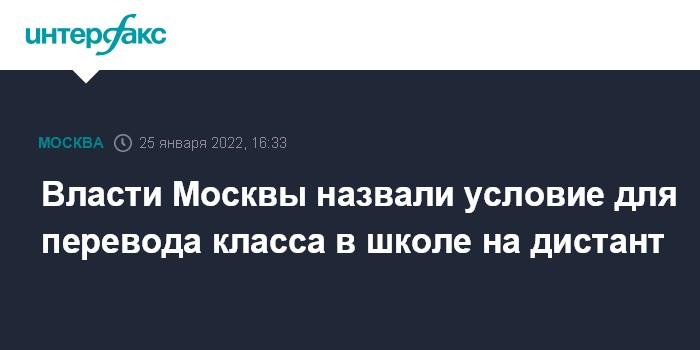 Москва. 25 января. INTERFAX.RU - В школах Москвы на удаленку переводятся только классы, которые находятся на карантине. Иначе перевести класс на дистанционное обучение можно только при единогласном одобрении родителей всех одноклассников, объяснили "Интерфаксу" в городском Департаменте образования.
