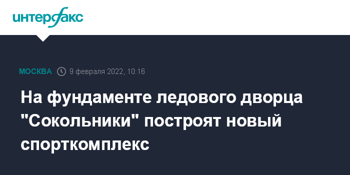 Москва. 9 февраля. INTERFAX.RU - В ходе реконструкции ледового дворца "Сокольники" на его месте появится современный спорткомплекс, сообщили в пресс-службе Мосгосстройнадзора.