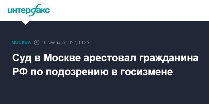 Суд в Москве арестовал гражданина РФ по подозрению в госизмене