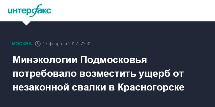 "Минэкологии Московской области направило в Арбитражный суд исковое заявление о возмещении ущерба, нанесенного незаконным размещением строительных отходов в городском округе Красногорск", - говорится в сообщении.