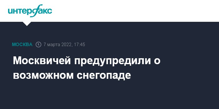 Москва. 7 марта. INTERFAX.RU - По прогнозам синоптиков, вечером и ночью в столице пройдет снег, наиболее интенсивными осадки будут с 21:00 до 03:00, сообщается в телеграм-канале комплекса городского хозяйства в понедельник.
